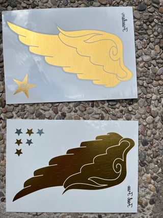 Alas doradas by The Glam Tattoo Co. Tatuajes temporales metálicos. Aplicar con piel limpia y dejar secar 2 minutos antes de moverse. Duran todo un día en Perfecto estado. Eliminar con alcohol