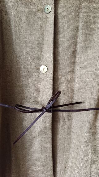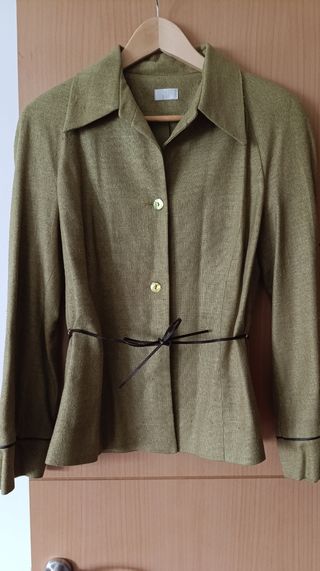 Chaqueta entallada verde hoja seca. Precioso color. Con detalle en puños y cinturón de cuero . Manga ranglan. Muy elegante.