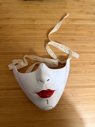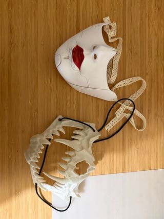 Conjunto de dos máscaras, una blanca con detalle rojo y otra con diseño de mandíbula. 5 euros cada una si se venden individual 8 euros por las 2 si se venden en pack - Máscara blanca con forma facial y detalle rojo. - Máscara con forma de mandíbula con dientes afilados.