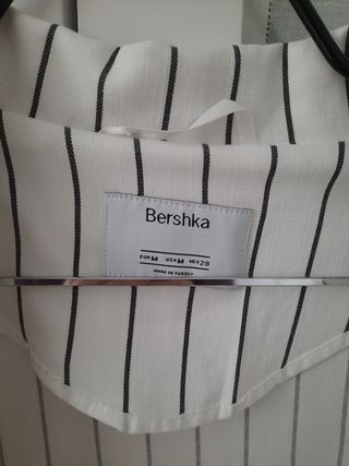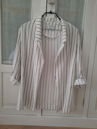 Blazer de Bershka con un diseño de rayas verticales. En perfecto estado - Diseño abierto. - Mangas enrolladas.