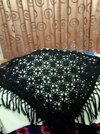 Mantón de ganchillo negro HECHO A MANO NUEVO de lana, Sin usar, perfecto para eventos festivos como la ofrenda de flores del pilar mide 120x200 cm Posiblidad de entregar en ZARAGOZA y alrededores gratuitamente y sin coste tags manton toquilla capa festival fiesta tradicional traje regional jota sardana Aragón la Rioja Navarra Galicia país vasco Cantabria Extremadura Andalucía Murcia Castilla León la mancha Madrid Valencia las fallas Catalunya Cataluña virgen del pilar traje ofrenda flores frutos Guadalupe Guadalajara