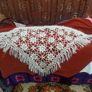Mantón de ganchillo blanco HECHO A MANO NUEVO de lana, Sin usar, perfecto para eventos festivos como la ofrenda de flores del pilar mide 95x 150 cm Posiblidad de entregar en ZARAGOZA y alrededores gratuitamente y sin coste tags manton toquilla capa festival fiesta tradicional regional jota sardana Aragón la Rioja Navarra Galicia país vasco Cantabria Extremadura Andalucía Murcia Castilla León la mancha Madrid Valencia las fallas Catalunya Cataluña virgen del pilar traje ofrenda flores frutos