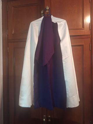 Traje completo de la Hdad del cautivo ( De palio) de Alcalá de Guadaira Talla Largo 1,41 cm con 3 dedos para sacar Manga 0,60 cm largo y ancho 0,17cm tiene para sacarle 4 dedos Botones, cordón y escudo 30€ SE ENTREGA LAVADO Y PLANCHADO (ALGO NEGOCIABLE