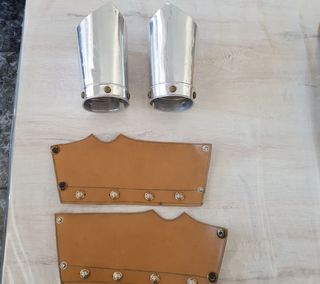 Varias piezas del traje de la Filà Abencerrajes. 2 brazaletes metálicos, 2 brazaletes de cuero, 1 pechera metálica, 2 pecheras de cuero, 1 bolsa de cuero y otras piezas sueltas.