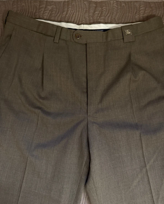 Exclusivo pantalón de traje de la icónica firma británica Burberry. Pieza auténtica y 100% original, confeccionada en un tejido de sastrería de alta calidad y excelente caída (probablemente lana o mezcla de lana, ideal para cualquier temporada). El color gris/marrón topo es versátil y atemporal, un imprescindible para el vestuario de alto nivel.Talla: XL . Color: Gris topo / Marrón piedra (Un neutro sofisticado). Estado: Nuevo sin etiquetas (NWT). Sin usar. Impecable. Autenticidad: Garantía total de originalidad. Adquirido en boutique oficial. Una inversión en elegancia atemporal.