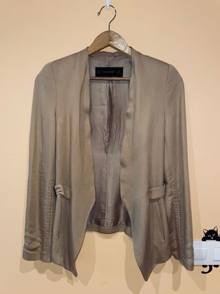 Preciosa chaqueta blazer de Zara Basic en color beige, talla 4. Está en muy buen estado y tiene un corte favorecedor. - Diseño elegante y versátil. - Ideal para cualquier ocasión. - Tejido suave y ligero.