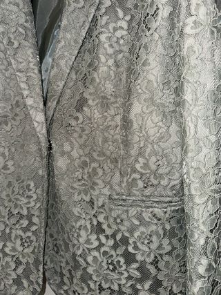 Elegante chaqueta americana de Mango con un delicado diseño de encaje. - Color verde agua pastel - Talla L - Cierre de un botón. - Bolsillos frontales.