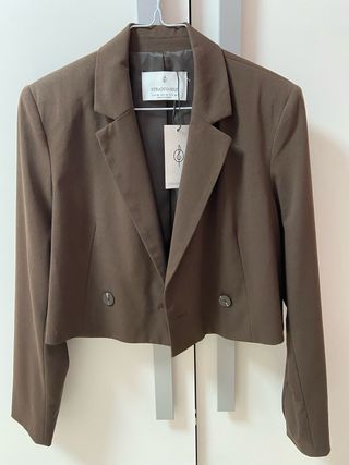 Blazer Stradivarius cropped marrón Talla XS 8