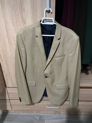 Elegante traje de chaqueta de Zara Man. - Chaqueta de corte moderno. - Pantalón a juego. - Bolsillo interior en la chaqueta. - Cierre de botón en la chaqueta.
