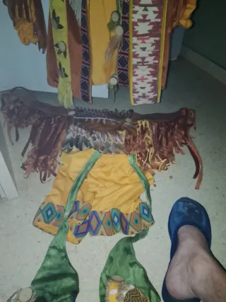 Disfraz espectacular Carnaval de Badajoz 2026 de la comparsa Cambalada. - Para coleccionismo. - Talla S / 36 de mujer. - Hecho a mano. - Pantalón, camisa, chaqueta y sombrero. - Complementos: collares, cinturones, puñal, botellas, bolso para polvos mágicos. - Detalles intrincados y coloridos. - Maquillaje no incluido.