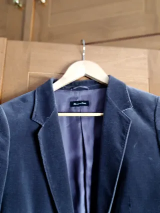 Traje de chaqueta de color azul de la marca Zara. Medidas se ven en la foto. Está en muy buen estado porque solo ha sido usado una vez.