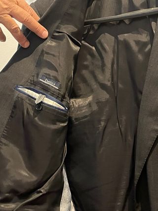 Traje de caballero de color negro, y el interior de color rosa. Talla 44.