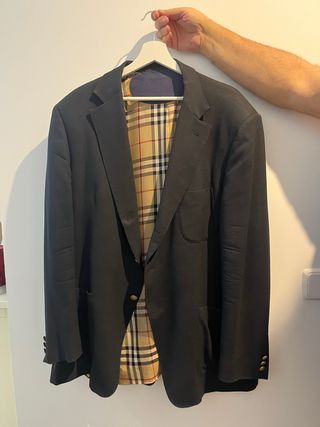 Chaqueta de vestir Burberry con forro de cuadros clásico. - Color exterior azul marino. - Forro interior con el icónico estampado de cuadros Burberry. - Cierre de un botón. - Bolsillos frontales con solapa.