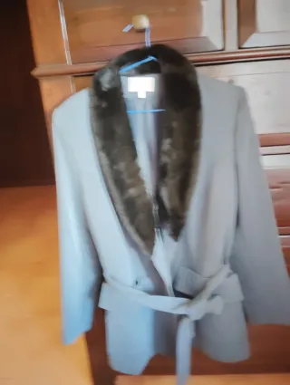 Elegante blazer de invierno con un toque sofisticado. - Cuello de pelo sintético. - Cinturón a juego para ajustar la silueta. - Diseño tipo bata.