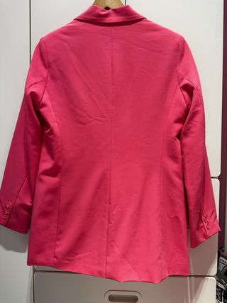Americana de la marca Cortefiel en color magenta o fucsia. Presenta un diseño elegante con pespuntes blancos. - Cierre de botones. - Bolsillos delanteros. - Cuello solapa. Solo puesta una vez.