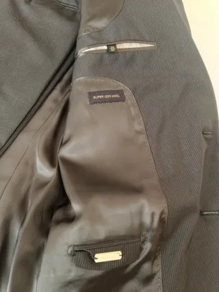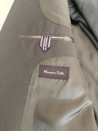 Traje elegante y juvenil de raya diplomática. Talla 44. Puesto en 2 ocasiones.Aprovecha y compra un traje de marca por poco precio. Se puede hacer entrega en persona. - Tejido con finas líneas verticales. - Diseño elegante.