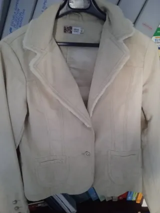 Elegante blazer de pana en color beige, con un corte entallado que favorece la figura. Ideal para añadir un toque sofisticado a cualquier atuendo. - Diseño de pana con textura. - Cierre de un botón. - Bolsillos frontales con solapa.