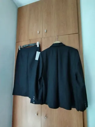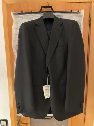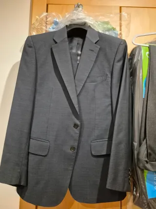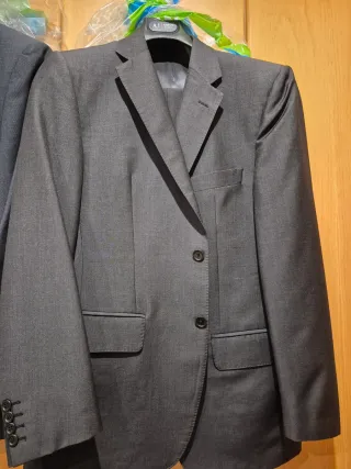 Traje de chaqueta y pantalón de El Corte Inglés. - Chaqueta de corte clásico. - Pantalón a juego. - Diseño elegante. - Talla 48 - Perfectas condiciones Tiene el bajo metido pero se le puede sacar.
