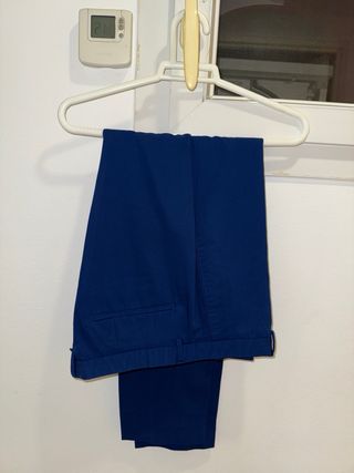 talla 52 (L) muy buen estado, apenas usado un par de veces pana azul algodon conjunto entero, chaqueta y pantalon. incluira clasico pin en la solapa (del color quw se quiera, hay para elegir)