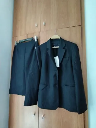 Elegante traje de dos piezas de Zara, casi sin uso. Ideal para ocasiones formales o de oficina. - Chaqueta de corte clásico con dos botones. - Falda a juego. - Tejido de buena calidad.