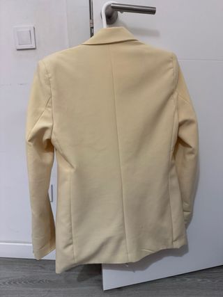 Conjunto de dos piezas de Zara. - Chaqueta de doble botonadura con botones dorados. - Pantalón a juego. - Color amarillo pastel.