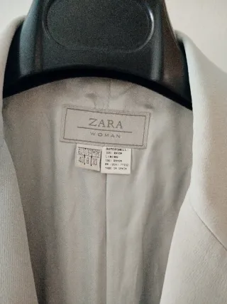 - Elegante traje de hombre, elaborado por Zara. - Color “gris marengo”, elaborado con viscoelástico y polyester. - Talla 54. - Pantalón de vestir con pinzas. - Bolsillo trasero con botón.