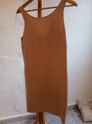 Elegante conjunto de chaqueta y pantalón de la marca Enquipo. El conjunto está en muy buen estado. - Incluye chaqueta y pantalón. - Color marrón. - Tejido liso de apariencia suave.