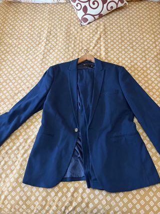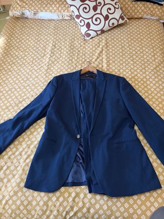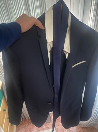 Traje azul marino completo ZARA Chaqueta talla 48 (se asemeja a una talla M) Pantalón talla 40 *Camisa y pajarita se venden a parte.