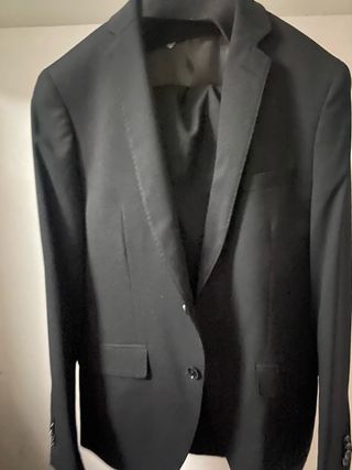 Traje negro de corte clásico y elegante. - Solapa de muesca. - Cierre de un botón. - Bolsillos frontales con solapa. -precio negociable