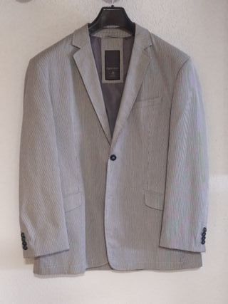 Chaqueta Americana de primavera/verano color mil rayas azulmarino y blanco, de Angelo Litrico talla xl. Tejido 80% Algodón, 18% Poliester y 2% Elastano. Envios por Wallapop (correos o InPost) o recogida en mano en Murcia Capital.