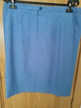 Elegante traje de chaqueta y falda para eventos especiales. Ideal para una boda o celebración, talla 46, diseño exclusivo y tela de calidad. Usado solo una vez, está impecable. - Dos piezas: chaqueta y falda. - Diseño sofisticado y favorecedor. - No Incluye la flor decorativa en la chaqueta.