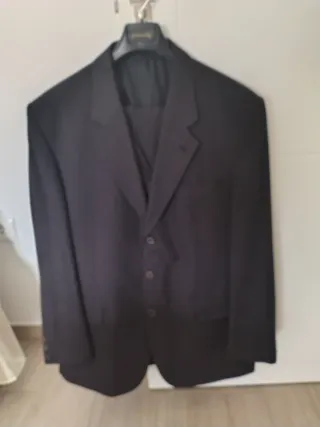 Traje de vestir de la marca Easy Wear. - Color azul marino. - Diseño clásico de dos botones. - Bolsillos frontales. - Puños con botones. Chaqueta talla 46 Pantalón talla 40
