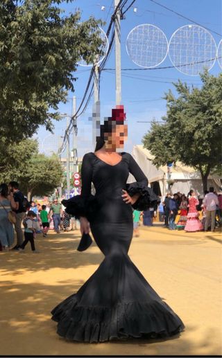 Vestido de gitana de color negro, está en perfectas condiciones porque solo me lo he puesto dos veces. Tiene un bolsillo interior bastante amplio, a mi me cabian todas las cosas incluyendo el teléfono. La talla sería una XS/S y las medidas son: Pecho 33 cm, Cadera 76cm y cintura 68 cm, no habría problema en probraselo antes de comprarlo si eres de Córdoba. Lo mejor es que al ser básico puedes combinarlo con diferentes mantones o flores. No dudes en preguntarme si tienes alguna duda soy de Córdoba capital.😊