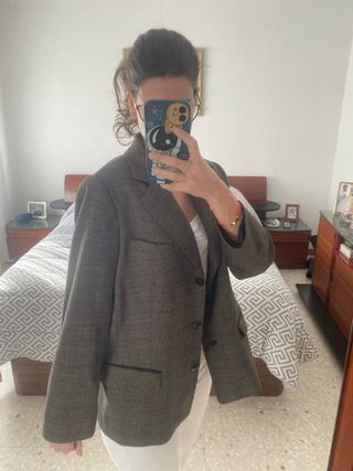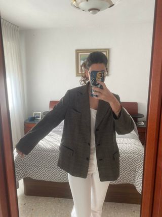 Chaqueta blazer Zara cuadros inglés azul coderas