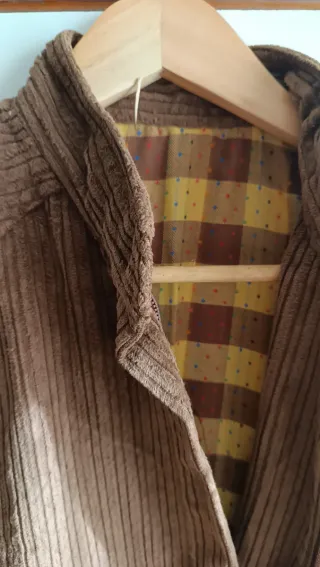 Traje de pana con forro a cuadros. La falda cierra con cremallera trasera. Está en perfecto estado Blazer marrón de pana HECHO A MANO No tiene talla porque está hecho a mano, revisar las medidas en las fotos. Venta en conjunto o por separado. Conjunto: 40€ Separado: - 15€ falda - 25€ chaqueta