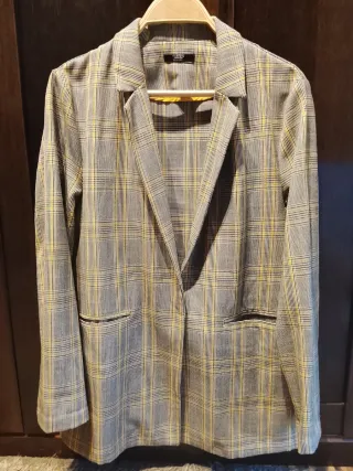 Blazer con un diseño de cuadros llamativo en tonos multicolor y amarillo mostaza. Ideal para añadir un toque de estilo a tu atuendo. - Diseño de cuadros. - Combinación de colores vibrante.