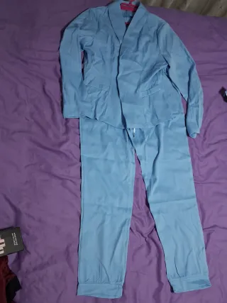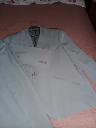 Conjunto de traje de chaqueta y pantalón. - Chaqueta con cierre de dos botones. - Pantalón a juego usado únicamente un día en una boda y esta tique de tintorería equivale como talla 40