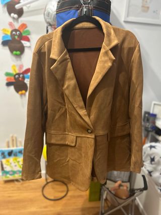 Americana de ante para mujer. - Diseño de solapa. - Cierre de un botón. - Bolsillos frontales.