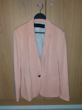 Chaqueta tipo blazer de Zara en color coral. Un básico elegante para cualquier ocasión. - Cierre de un botón - Bolsillos delanteros - Forro interior a rayas
