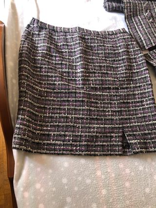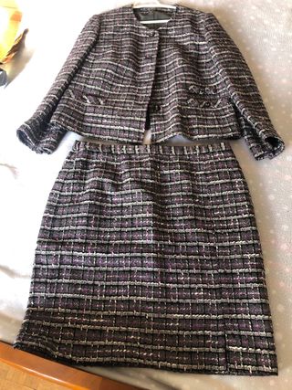 Traje chaqueta y falda tweed morado gris