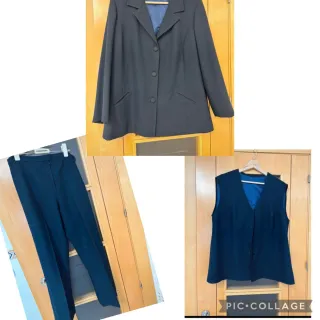 Conjunto de traje de tres piezas. No se la talla, tallara como una 48-50 Utilizado una vez No se arruga Chaqueta y chaleco forrado Buena confección Medidas: Chaqueta: de axila a axila 59-60cm Chaleco: de axila a axila 56 cm Pantalón: cintura 47 cm