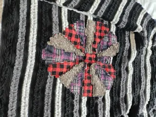 Prenda de vestir con un diseño llamativo y original. - Diseño de rayas verticales en negro, blanco y gris. - Detalle de aplique floral en la parte delantera. - Mangas largas.