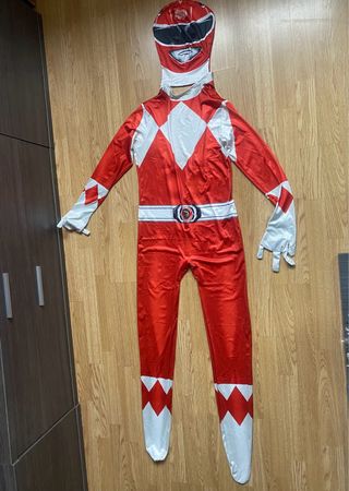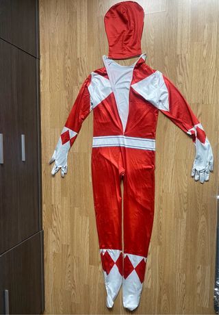 Disfraz completo de Power Ranger rojo, listo para la acción. - Diseño icónico con rombos blancos en el torso y brazos. - Máscara integrada con detalles faciales. - Cinturón blanco con emblema. - Puños y tobillos con detalles blancos y rojos. - Incluye mono y máscara. - Medida de 170 cm - Sin estrenar - Precio negociable y oferta si se compran los 3 juntos (rosa, amarillo y rojo)