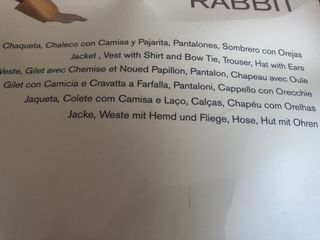 Disfraz de conejo loco para adulto, inspirado en el personaje. - Incluye chaqueta, chaleco, pantalón y sombrero. - Talla ML. Reloj aparte 5€