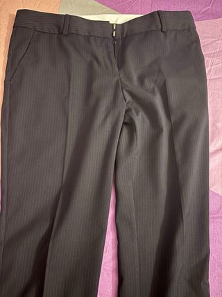 Pata estrecha. En perfecto estado. Tiro bajo. Pantalón de traje azul marino con raya diplomática muy fina. Fórmula joven. Talla 40
