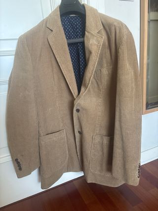 Americana de pana en color beige de la marca Hackett. Es una prenda elegante y versátil. - Cierre de dos botones. - Bolsillos de solapa. - Puños con botones. - Forro interior estampado.