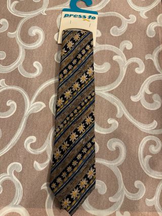 Corbata Dustin de estilo clásico con un elegante estampado floral combinado con rayas diagonales en tonos azul y beige. Un diseño atemporal, ideal tanto para traje formal como para looks más personales y con carácter. 🔹 Marca: Dustin 🔹 Material: 100% seda natural 🔹 Diseño: Floral con rayas diagonales 🔹 Colores: Azul marino, beige y dorado 🔹 Estado: Muy buen estado, cuidada y sin defectos 🔹 Ancho: Estándar Una corbata de calidad premium, con buena caída y tacto suave, perfecta para oficina, eventos o para elevar un traje básico con un punto distintivo. 📦 Envío rápido o entrega en mano. Más corbatas premium en mi perfil.