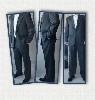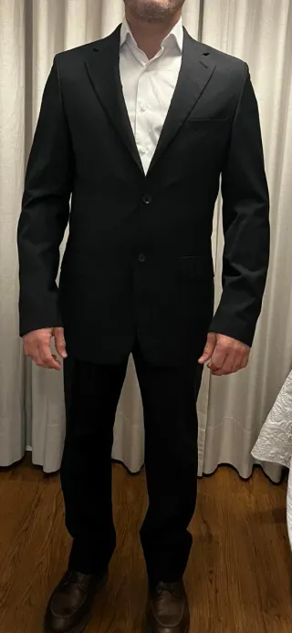 Traje en muy buen estado, el pantalón es talla 38 y mide de largo 97cm. La americana es talla 48 SLIM FIT y Las mangas miden de largo 64cm.