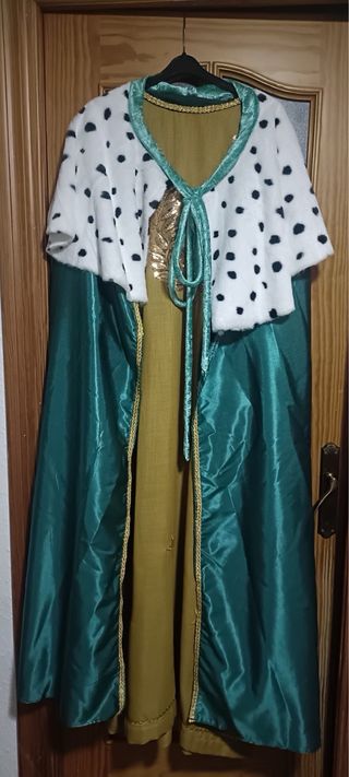 Traje de Rey Mago, ideal para celebraciones, colegios, asociaciones, familias. - Capa con estampado de manchas. - Detalle de pedrería en el cuello. - Tejido con acabado satinado.
