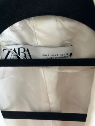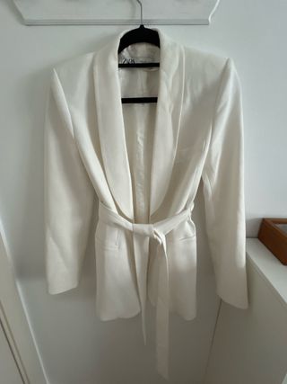 Elegante americana de Zara en color blanco. Presenta un diseño con cinturón para ceñir la cintura. - Cuello tipo chal. - Cinturón a juego. - Bolsillos frontales.